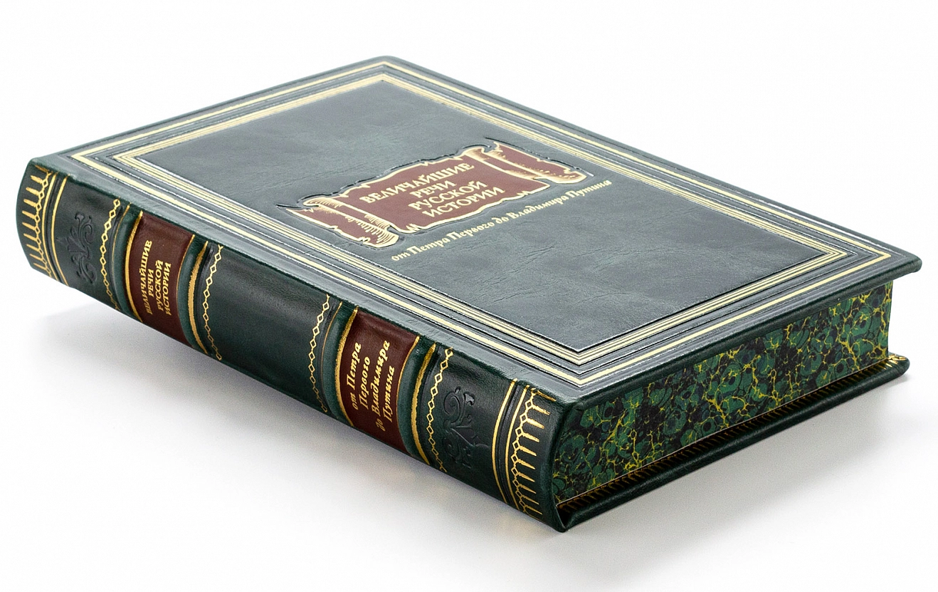Кожаный переплёт ручной работы. Выполнен из высококачественной кожи телёнка. Тиснение - блинтовое, рельефное, тиснение золотой и цветной фольгой. Подарочное издание отпечатано на дизайнерской бумаге. Книжные блоки вручную сшиты и отшлифованы, обрез блока страниц украшены в стиль рисунка мрамора. Прекрасный подарок для интеллектуала.