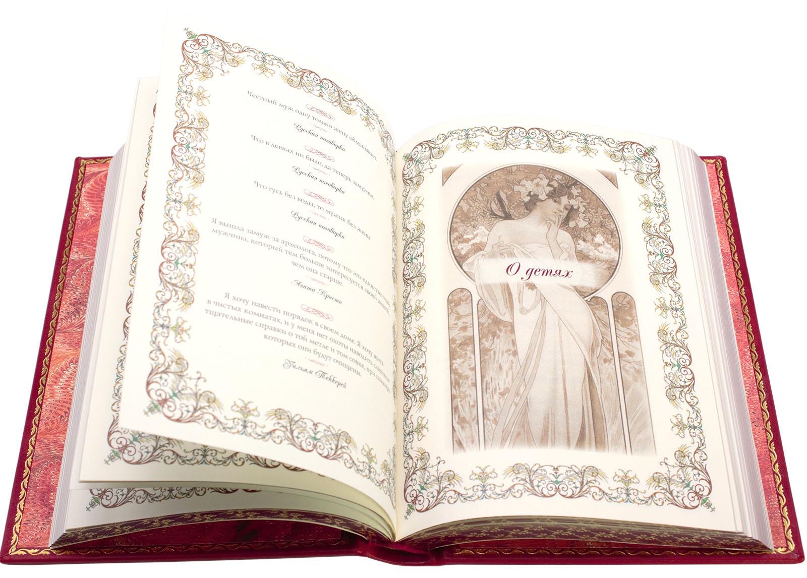 КНИГА «ЖЕНСКАЯ МУДРОСТЬ», ПОДАРОЧНАЯ В КОРОБЕ, КОЖАНЫЙ ПЕРЕПЛЕТ АННОТАЦИЯ Прекрасная ручная работа, изысканный французский стиль переплета, объемное тиснение с использованием нескольких видов фольги и мелованная бумага отличного качества. Все используемые материалы под стать интереснейшему содержанию! Данное подарочное издание «Женская мудрость» содержит множество бессмертных цитат великих женщин, а так же мужчин, которые во все времена от Античности до наших дней черпали силу и вдохновение внимательно наблюдая за своими спутницами. Приобретая этот сборник вы становитесь обладателем вековой мудрости, заключенной в уникальное оформление от нашего производства. ИСПОЛНЕНИЕ Кожаный переплет ручной работы в стиле "французский переплет". Золотое, блинтовое, фигурное тиснения и тиснение цветной фольгой. Бинты на корешке. Трехсторонний обрез книги ошкурен и окрашен вручную, прокатка узора золотом в верхней части . Форзац выполнен из дизайнерской бумаги. Печать цветная, бумага мелованная. Книга представлена в подарочном коробе. Разработка дизайна и оформление переплёта - переплётная мастерская Идеальная библиотека. ОПИСАНИЕ Сборник цитат – это та книга, которая не читается залпом, но становится верным спутником на протяжении всей жизни. Мудрость не имеет временной идентификации, она либо есть, либо её нет и не важно, является человек нашим современником или ученым, жившим во времена постройки египетских пирамид. Иногда одна фраза может обогатить наш внутренний мир больше, чем целая энциклопедия! «Дети – цветы жизни. Не давай им однако распускаться» Эмиль Кроткий «Все браки удачны. Трудности начинаются тогда, когда начинается совместная жизнь» Франсуаза Саган «Мне всегда было непонятно – люди стыдятся бедности и не стыдятся богатства» Фаина Раневская «Не существует искусства, которое не требовало бы виртуозности, и не существует окончательной меры для полноты этой виртуозности» Константин Станиславский «Мужчина становится злым в двух случаях: когда голоден и когда унижен, а женщина лишь в одном – когда не имеет любви» Гиппократ