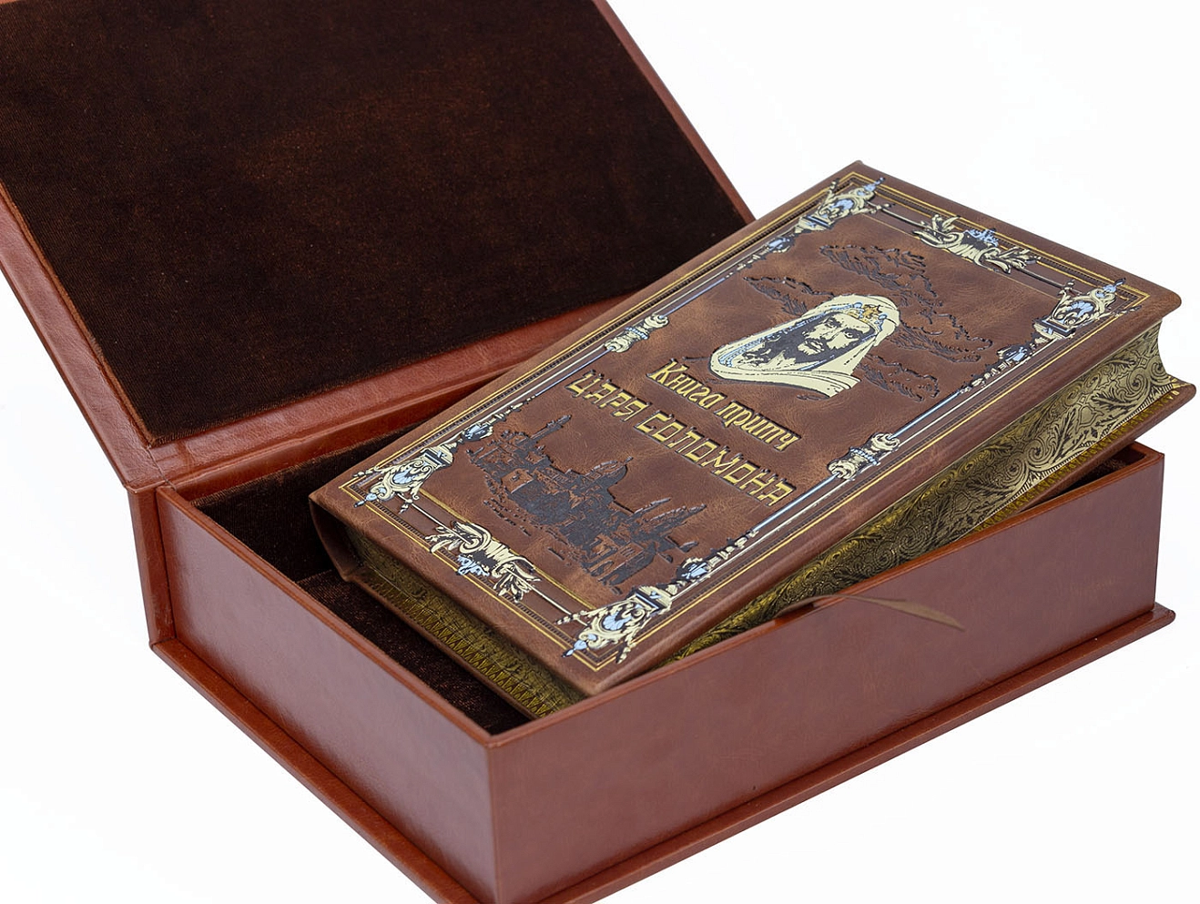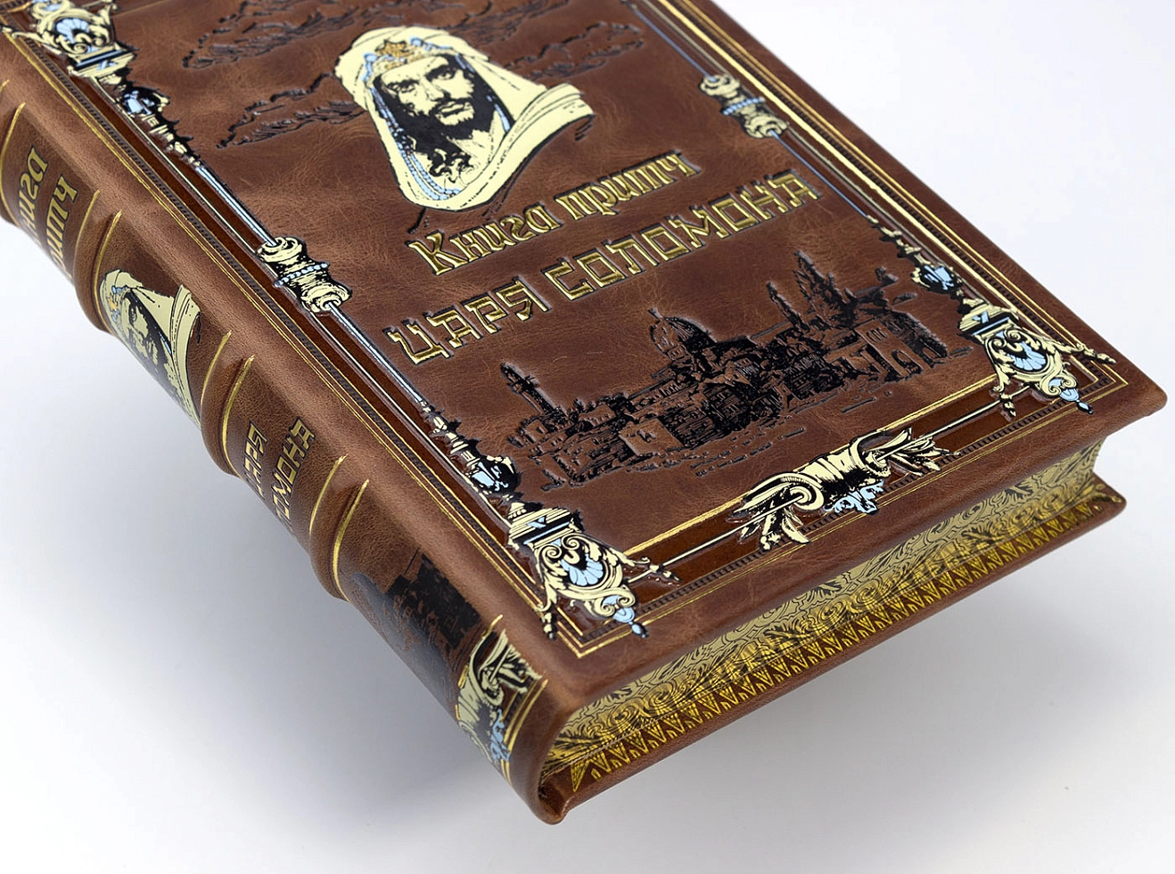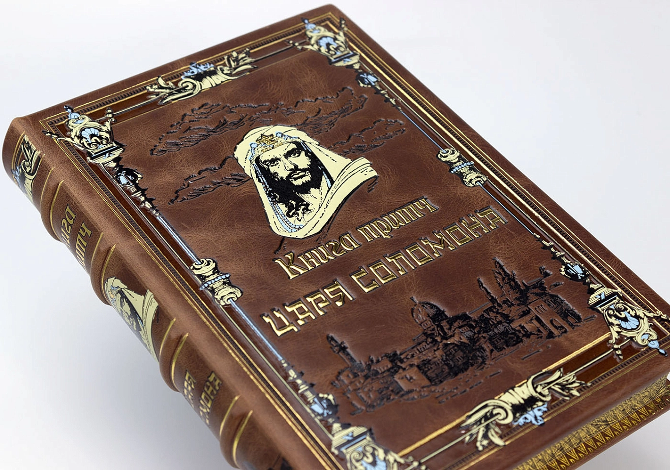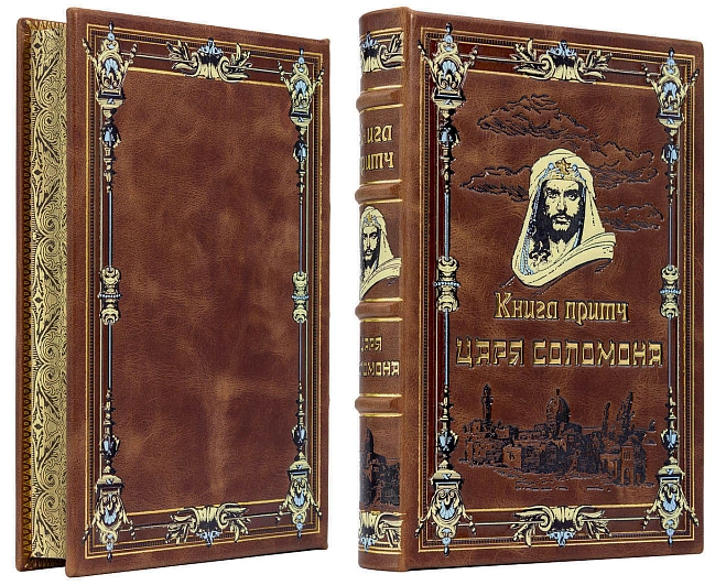 Подарочная книга притч царя Соломона в историческом кожаном переплете, отпечатана на дизайнерской бумаге, с цветовым оттенком близким к свиткам. В книги вы найдете интересные древние гравюры и мудрые наставление, которые не потеряли своей актуальности и сегодня.