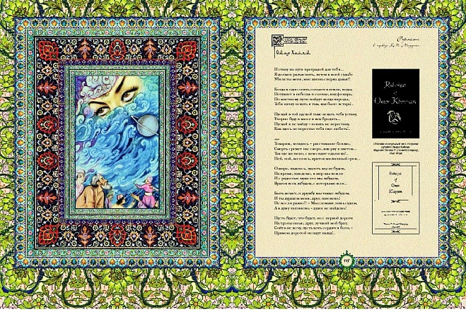«Рубайят» Омара Хайяма – собрание восточной мудрости в переводах И.И. Тхоржевского и прочих известных русских поэтов конца XIX – начала ХХ века. В издание включены в переводах Ф.Э, Корша и других русских поэтов и произведения персидских стихотворцев X–XVI веков: ИбнСины, АбуСеида, Хафиза, Руми, Низами, Саади, Хакани. Стихи сопровождают сотни иллюстраций: Мохаммада Таджвида к «Рубайят» Омара Хайяма и стихам Хафиза, опубликованным в Тегеране в середине ХХ века, лучшие иллюстрации западноевропейских изданий конца XIX – начала ХХ века, персидские миниатюры XV–XIX веков, миниатюры кашмирских рукописей XVIII века. Издание дополнено хронологией жизни и творчества О. Хайяма, переводов Рубаи, примечаниями и указателями.