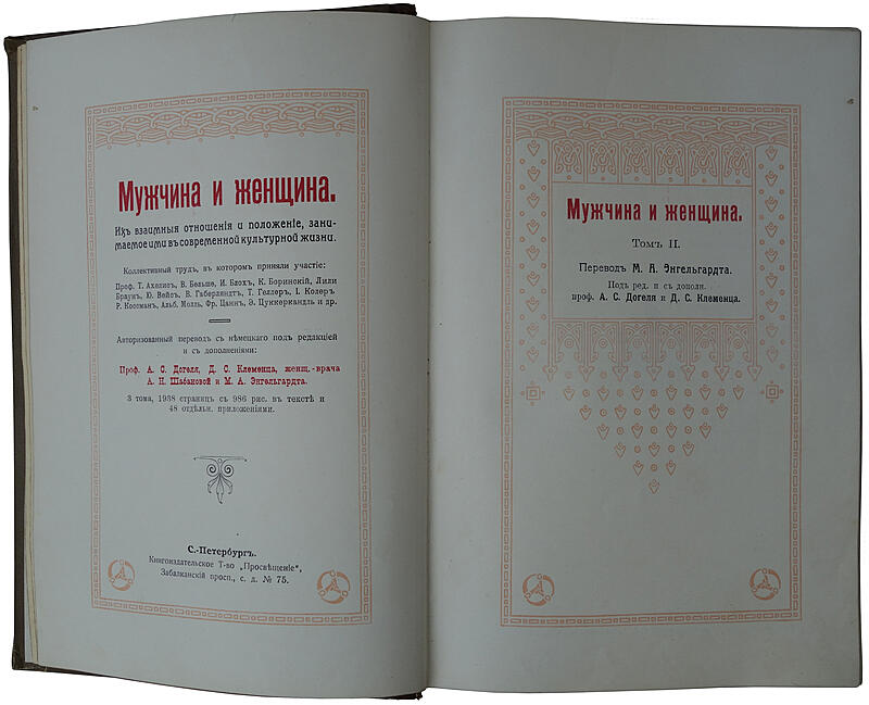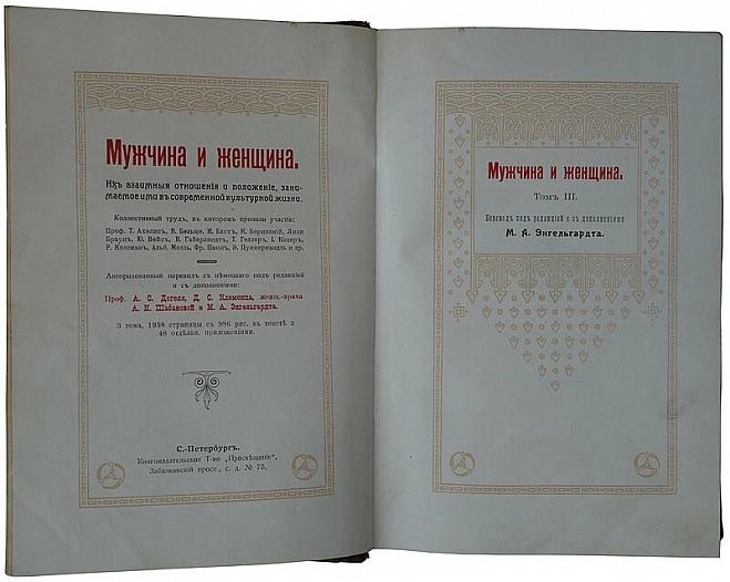 Антикварное издание "Мужчина и женщина. Их взаимные отношения и положение, занимаемое ими в современной культурной жизни" (в 3 томах) 1911г.