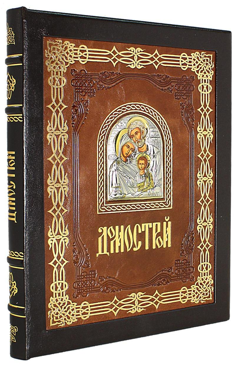 КНИГА ДОМОСТРОЙ 16 ВЕКА ПОДАРОЧНАЯ В ФУТЛЯРЕ АННОТАЦИЯ «Домострой» - шедевр русской литературы. Хоть это произведение и было создано в 1552 году великим книжником того времени Нестером Селивестровым из Новгорода (в эпоху правления Государя царя и великого князя всея Руси Ивана Васильевича Грозного), в свет оно вышло лишь в 1899 году, когда у людей возник интерес к быту, повседневной жизни и традициям верующего человека на Руси. На страницах данного произведения именно эти каноны и нашли свое отображение. Наша переплетная мастерская предлагает Вам купить это издание в эксклюзивном оформлении. Французский стиль кожаного переплета, высокого качества переплетная кожа с золотым тиснением, обрез книжного блока вручную отшлифован и тонирован индивидуальным узором. Так же вручную изготовлен подарочный футляр для книги. Изысканная работа наших мастеров! ИСПОЛНЕНИЕ Кожаный переплет ручной работы. Выполнен в стиле «Французский переплет». Обложка в двух уровнях. Золотое и блинтовое тиснения. Украшена иконой «Святое семейство» из позолоты и серебра. Обрез ошкурен, отшлифован и тонирован вручную. В комплекте подарочный короб. Вы можете заказать любой вид кожаного переплета или реставрации своих книг, мы поможем создать для вас личную библиотеку в индивидуальном оформлении. В наличии профессиональные переплетные материалы и необходимое оборудование.