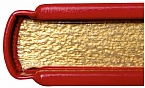 Переплет ручной работы. Натуральная переплетная кожа. Каптал из шелковых нитей. Ляссе шелковое. Обрез торшонированный золотой фольгой. Украшение переплета: тиснение полиграфической фольгой, полиграфическая вставка.