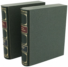 Подарочное репринтное издание в 3-х томах, каждая книга которая представлена в цельнокожаном переплете ручной работы, включает в своем дизайне сочетание золотого и черного тиснения, выполненных на высококачественной натуральной коже. Торшонированный обрез с золотой накаткой. Форзацы оформлены дублюрами. Ляссе. Книга представлена в оригинальном подарочном коробе, перчатки и, по желанию, сертификат (может быть именным) в комплекте. Цветовое сочетание переплёта и упаковки может отличаться от представленных на фото.