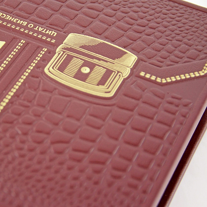 Тиснение блинтовое, золотой и серебряной фольгой.