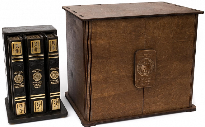 Подарочные книги: «Искусство управления миром» Бронислав Виногродский (в 3 томах) АННОТАЦИЯ В собрании книг «Искусство управления миром» заключен тысячелетний опыт китайских мудрецов и правителей. Это собрание, в первую очередь, предназначено для людей, которые хотят управлять своим миром, поскольку никаким другим миром управлять невозможно. Чтобы управлять, нужно иметь представление о предмете управления. Но как создать правильное представление о собственном мире, если нет правильных представлений о самом себе? Согласно философии Лао-Цзы, человек, который управляет своими состояниями, своими действия – управляет и обстоятельствами. В этом и заключаются три основных аспекта человеческой личности, которые в даосизме сформулированы следующим образом: мастер творческих состояний, мастер осознанных действий и мастер управляемых совпадений. Об этой и других концепциях идет речь в книгах из собрания «Искусство управления миром». В собрание вошли: 1. Конфуций «Рассуждения в изречениях» 2. Лао-Цзы «Книга об истине и силе» 3. Сунь-Цзы «Искусство побеждать» ОФОРМЛЕНИЕ Составной переплет «Брадель» ручной работы, выполнен из эксклюзивной кожи «Vintage Olive» производства итальянской фабрики «Carisma». Обложки книг и подарочный пенал оформлены многоуровневым тиснением: глубоким блинтовым и рельефным золотым, а также медными элементами с чеканкой китайских иероглифов. Форзацы выполнены из холста с цветной печатью репродукций древних восточных полотен. Обрезы книг вручную позолочены и декорированы глубокой гравировкой. Все три тома заключены в роскошный пенал, обшитый кожей, оформленный в едином стиле с книжными обложками. Персональный сертификат с индивидуальным текстом поздравления. Бархатный мешочек. Деревянный кейс. Формат книги: 158х247х45 мм. Вес книги: 1,5 кг. Общий вес комплекта: 5,8 кг. Готовые книги могут незначительно отличаться от представленных на фото.