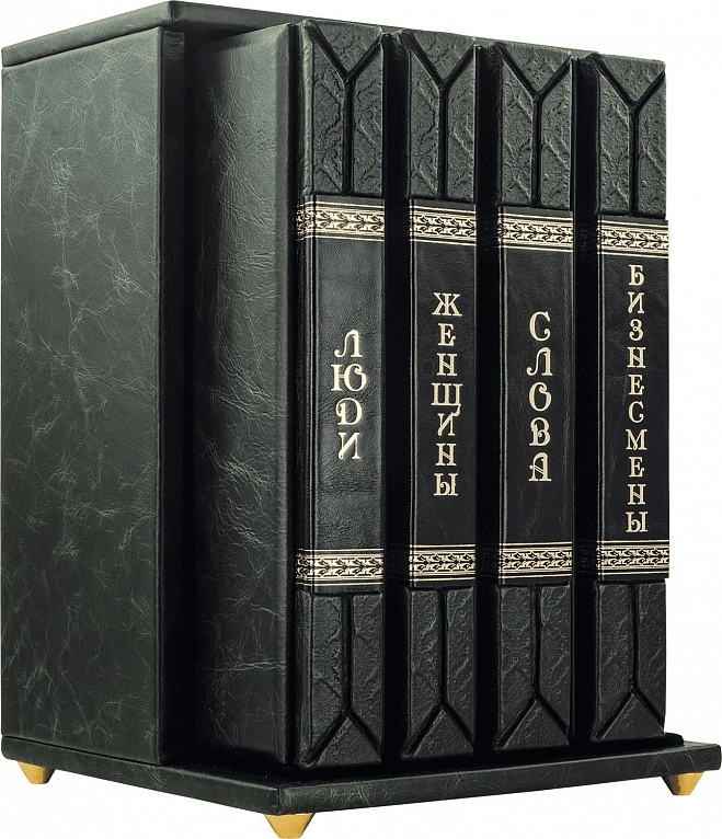ИЗМЕНИВШИЕ МИР (SMERALDO SCURO) (В 4-Х ТОМАХ) АННОТАЦИЯ В этих четырех томах собраны истории людей, изменивших этот мир раз и навсегда. Среди них ученые, мыслители, литераторы, художники, политики, бизнесмены. Эти истории интересны и поучительны; написанные простым понятным языком, они вдохновляют и мотивируют читателей внести и свой вклад в развитие человечества. Мораль, выведенная в книгах, заключается в том, что слава – есть ничто иное, как награда за упорный труд и суровые лишения. ОФОРМЛЕНИЕ Составной переплет «Брадель» ручной работы. Комбинация натуральных кож «Smeraldo Scuro» и «Nero» производства кожевенной итальянской фабрики «Claudio». Обложки книг декорированы глубоким блинтовым и рельефным золотым тиснением. Обрезы книжных блоков оформлены в авторской технике золочения с нанесением орнамента. Футляр на латунных ножках выполнен в едином стиле с книгами и устлан французским коттон-бархатом. Персональный сертификат с индивидуальным текстом поздравления. Бархатный мешочек. Деревянный кейс. Количество страниц – 3840 стр. (мелованная бумага, высокое качество печати) Формат книги – 204х283х45 мм. Формат книг с футляром - 220х307х220 мм. Вес книги – 1,96 кг. Вес комплекта – 5,3 кг. Готовые книги могут незначительно отличаться от представленных на фото. СОДЕРЖАНИЕ «Люди, перевернувшие мир» Эта книга о людях, которые изменили наше представления о мире. Благодаря их таланту, находчивости и решимости были попраны устаревшие стандарты и раскрыты новые горизонты. Своим примером они доказали всем людям мира, что слава – есть ничто иное, как награда за упорный труд и годы лишений. В книге представлены выдающиеся личности: люди искусства и науки, политики и предприниматели. Каждая глава содержит основные факты биографии, историю успеха и важнейшие их жизненные вехи. «Женщины, изменившие мир» Издавна считалось, что изменять и перестраивать мир – удел мужчин, что лишь «сильному полу» по плечу роль лидеров и преобразователей. И все-таки женские имена тоже вписаны на страницах истории. Женщины и раньше активно влияли на судьбы мира, но XX век стал настоящим «веком великих женщин! Коко Шанель и Жаклин Кеннеди, принцесса Диана и Эвита Перрон, Мэрилин Монро и Одри Хепберн, Марлей Дитрих и Грета Гарбо, Эдит Пиаф и Мария Каллас, Гала Дали и Фрида Кало, Айседора Дункан и Анна Павлова – все они не просто изменили мир, но сделали его стильным, эффектным, наконец, просто интересным! О судьбах великих женщин, о страстях, трагедиях и триумфах рассказывает эта книга. «Слова, изменившие мир» Эта подборка включает в себя более 50 речей и публичных выступлений великих исторических личностей, от Моисея и Цицерона до Уильяма Черчилля и Барака Обамы. Автор этой подборки знакомит читателей с речами, изменившими в свое время ход истории, с великолепными плодами ораторского искусства. Каждую представленную в книге речь предваряет глубокий анализ с раскрытием исторического контекста, что помогает читателю вникнуть в самую суть происходивших событий. «Бизнесмены, изменившие мир» Казалось бы, кому менять мир, как не людям науки, искусства. Но чего будут стоить плоды их труда, если не выйдут в свет или не найдут практического применения? А значит меняют мир не только ученые, мыслители, литераторы, художники, но и бизнесмены – люди инвестирующие, продвигающие и продающие. Их усилиями в нашу 