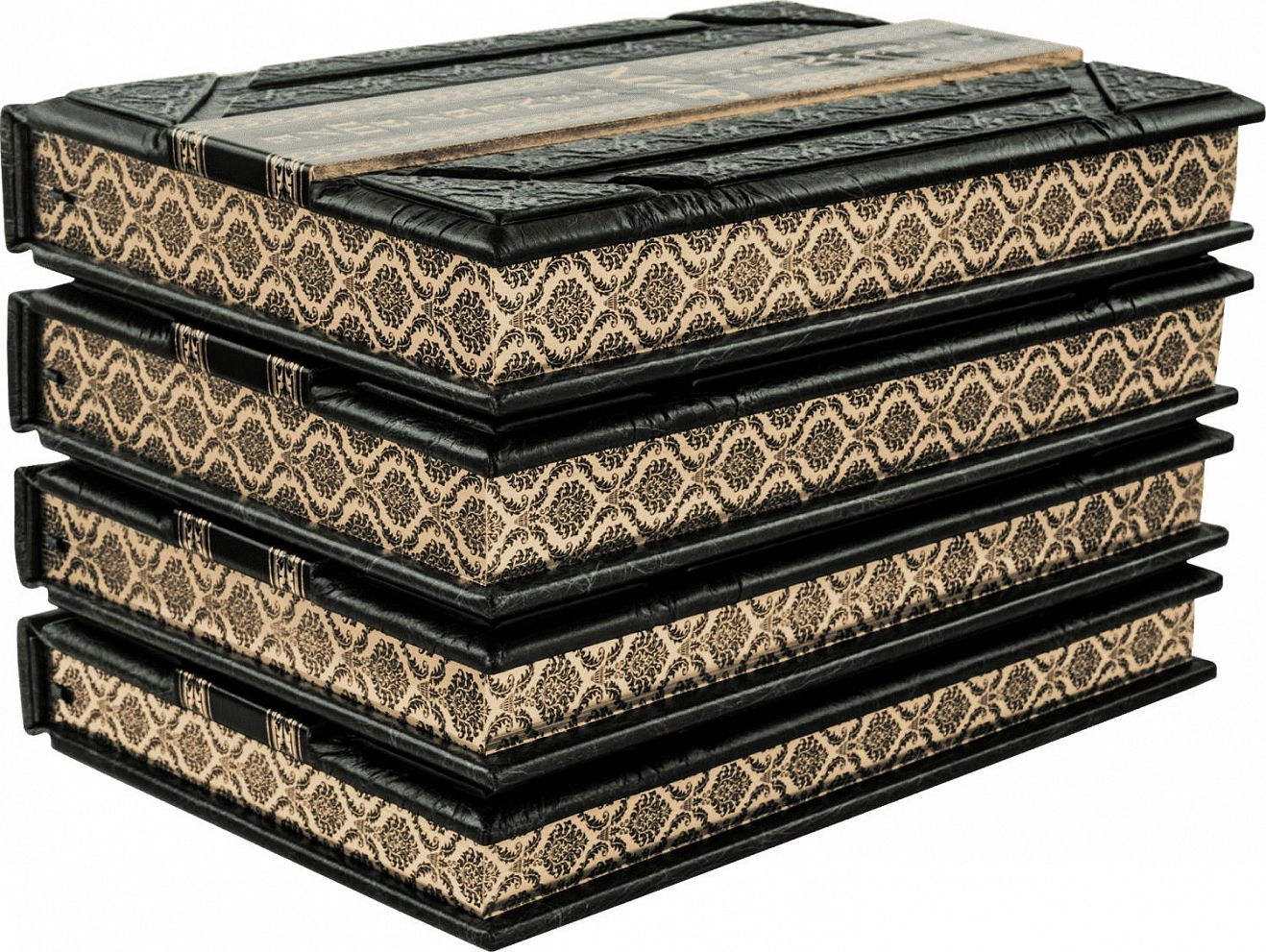 ИЗМЕНИВШИЕ МИР (SMERALDO SCURO) (В 4-Х ТОМАХ) АННОТАЦИЯ В этих четырех томах собраны истории людей, изменивших этот мир раз и навсегда. Среди них ученые, мыслители, литераторы, художники, политики, бизнесмены. Эти истории интересны и поучительны; написанные простым понятным языком, они вдохновляют и мотивируют читателей внести и свой вклад в развитие человечества. Мораль, выведенная в книгах, заключается в том, что слава – есть ничто иное, как награда за упорный труд и суровые лишения. ОФОРМЛЕНИЕ Составной переплет «Брадель» ручной работы. Комбинация натуральных кож «Smeraldo Scuro» и «Nero» производства кожевенной итальянской фабрики «Claudio». Обложки книг декорированы глубоким блинтовым и рельефным золотым тиснением. Обрезы книжных блоков оформлены в авторской технике золочения с нанесением орнамента. Футляр на латунных ножках выполнен в едином стиле с книгами и устлан французским коттон-бархатом. Персональный сертификат с индивидуальным текстом поздравления. Бархатный мешочек. Деревянный кейс. Количество страниц – 3840 стр. (мелованная бумага, высокое качество печати) Формат книги – 204х283х45 мм. Формат книг с футляром - 220х307х220 мм. Вес книги – 1,96 кг. Вес комплекта – 5,3 кг. Готовые книги могут незначительно отличаться от представленных на фото. СОДЕРЖАНИЕ «Люди, перевернувшие мир» Эта книга о людях, которые изменили наше представления о мире. Благодаря их таланту, находчивости и решимости были попраны устаревшие стандарты и раскрыты новые горизонты. Своим примером они доказали всем людям мира, что слава – есть ничто иное, как награда за упорный труд и годы лишений. В книге представлены выдающиеся личности: люди искусства и науки, политики и предприниматели. Каждая глава содержит основные факты биографии, историю успеха и важнейшие их жизненные вехи. «Женщины, изменившие мир» Издавна считалось, что изменять и перестраивать мир – удел мужчин, что лишь «сильному полу» по плечу роль лидеров и преобразователей. И все-таки женские имена тоже вписаны на страницах истории. Женщины и раньше активно влияли на судьбы мира, но XX век стал настоящим «веком великих женщин! Коко Шанель и Жаклин Кеннеди, принцесса Диана и Эвита Перрон, Мэрилин Монро и Одри Хепберн, Марлей Дитрих и Грета Гарбо, Эдит Пиаф и Мария Каллас, Гала Дали и Фрида Кало, Айседора Дункан и Анна Павлова – все они не просто изменили мир, но сделали его стильным, эффектным, наконец, просто интересным! О судьбах великих женщин, о страстях, трагедиях и триумфах рассказывает эта книга. «Слова, изменившие мир» Эта подборка включает в себя более 50 речей и публичных выступлений великих исторических личностей, от Моисея и Цицерона до Уильяма Черчилля и Барака Обамы. Автор этой подборки знакомит читателей с речами, изменившими в свое время ход истории, с великолепными плодами ораторского искусства. Каждую представленную в книге речь предваряет глубокий анализ с раскрытием исторического контекста, что помогает читателю вникнуть в самую суть происходивших событий. «Бизнесмены, изменившие мир» Казалось бы, кому менять мир, как не людям науки, искусства. Но чего будут стоить плоды их труда, если не выйдут в свет или не найдут практического применения? А значит меняют мир не только ученые, мыслители, литераторы, художники, но и бизнесмены – люди инвестирующие, продвигающие и продающие. Их усилиями в нашу 