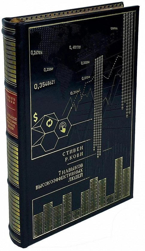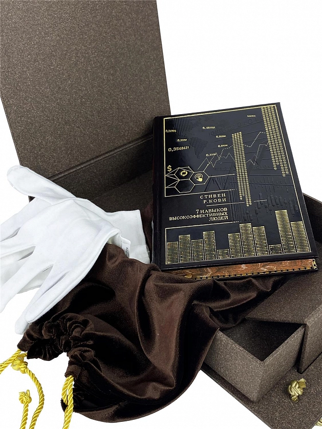 Подарочная книга "7 навыков высокоэффективных людей" Стивен Р. Кови АННОТАЦИЯ Цитата "Один из самых важных уроков, которые я получил в своей жизни, звучит так: если вы хотите достичь высочайших целей и добиться выполнения самых сложных задач, сформулируйте принцип, или естественный закон, определяющий результаты, к которым вы стремитесь, и следуйте ему". Стивен Кови О чем книга Во-первых, эта книга излагает системный подход к определению жизненных целей, приоритетов человека. Эти цели у всех разные, но книга помогает понять себя и четко сформулировать жизненные цели. Во-вторых, книга показывает, как достигать этих целей. И в-третьих, книга показывает, как каждый человек может стать лучше. Причем речь идет не об изменении имиджа, а о настоящих изменениях, самосовершенствовании. Книга не дает простых решений и не обещает мгновенных чудес. Любые позитивные изменения требуют времени, работы и упорства. Но для людей, стремящихся максимально реализовать потенциал, заложенный в них природой, эта книга - дорожная карта. Почему книга достойна прочтения Книга входит в рейтинг ТОП 25 самых значимых книг по менеджменту по версии журнала Time. Эта книга - "международный бестселлер №1" по теме личностного роста, оказавшая большое влияние на жизни миллионов людей, включая Билла Клинтона, Ларри Кинга и Стивена Форбса. В мире продано более 15 млн ее экземпляров. Половина крупнейших мировых корпораций, входящих в рейтинг Fortune 500, посчитали своим долгом ознакомить своих сотрудников с философией эффективности, изложенной в "Семи навыках". Автор книги входит в число 25 самых влиятельных людей США. Для кого эта книга Для всех, кто хочет обрести счастье, жить в согласии с собой, при этом добиваясь выдающихся успехов в профессиональной сфере. ОПИСАНИЕ Цельнокожаный переплёт ручной работы, украшен цветной кожаной вставкой, а также золотым тиснением. Корешок декорирован бинтами. Текст книги напечатан на офсетной бумаге и дополнен чёрно-белыми иллюстрациями. Обрез оформлен в технике "Перо павлина". Ляссе из шёлковой ленты. Форзац цельный из дизайнерской бумаги. Дублюра окатана золотом. Книга представлена в оригинальном подарочном коробе, перчатки и, по желанию, сертификат (может быть именным) в комплекте. Цветовое сочетание переплёта и упаковки может отличаться от представленных на фото.