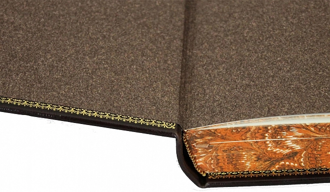 Богато оформленное репринтное собрание, представлено в подарочном издании. Французский Цельнокожаный переплёт ручной работы, украшен цветной кожаной вставкой,а также блинтовым ицветным тиснением. Корешок декорирован бинтами.Текст книг напечатан на бумаге Munken Print Cream Шведского производства . Обрез оформлен в технике "Перо павлина". Ляссе из шёлковой ленты. Форзац цельный из дизайнерской бумаги.Дублюра окатана золотом.
