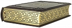 Составной переплет «Брадель», ручной работы, выполненный из натуральной итальянской кожи теленка «Marrone». Обложка книги оформлена рельефным «золотым» тиснением и объемными узорами ручного тиснения. Обрез книги выполнен в авторской технике позолоты с нанесением орнамента.