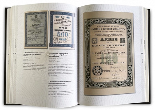 Подарочная книга "Ценные бумаги России и зарубежных стран" ОПИСАНИЕ В книге представлено все разнообразие ценных бумаг – акций, сертификатов, облигаций, выпущенных в XIX – XX вв. российскими и зарубежными компаниями