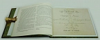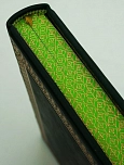 Коллекционная. Эксклюзивное исполнение переплета: блок перешит на шнуры; обложка из натуральной, застаренной вручную кожи, со вставками; художественное тиснение на обложке и корешке, форзац выполнен из мраморной бумаги ручного крашения и окатан вручную бордюрным орнаментом; обрезы окрашены и гравированы вручную. Индивидуальный футляр с кожаной окантовкой.