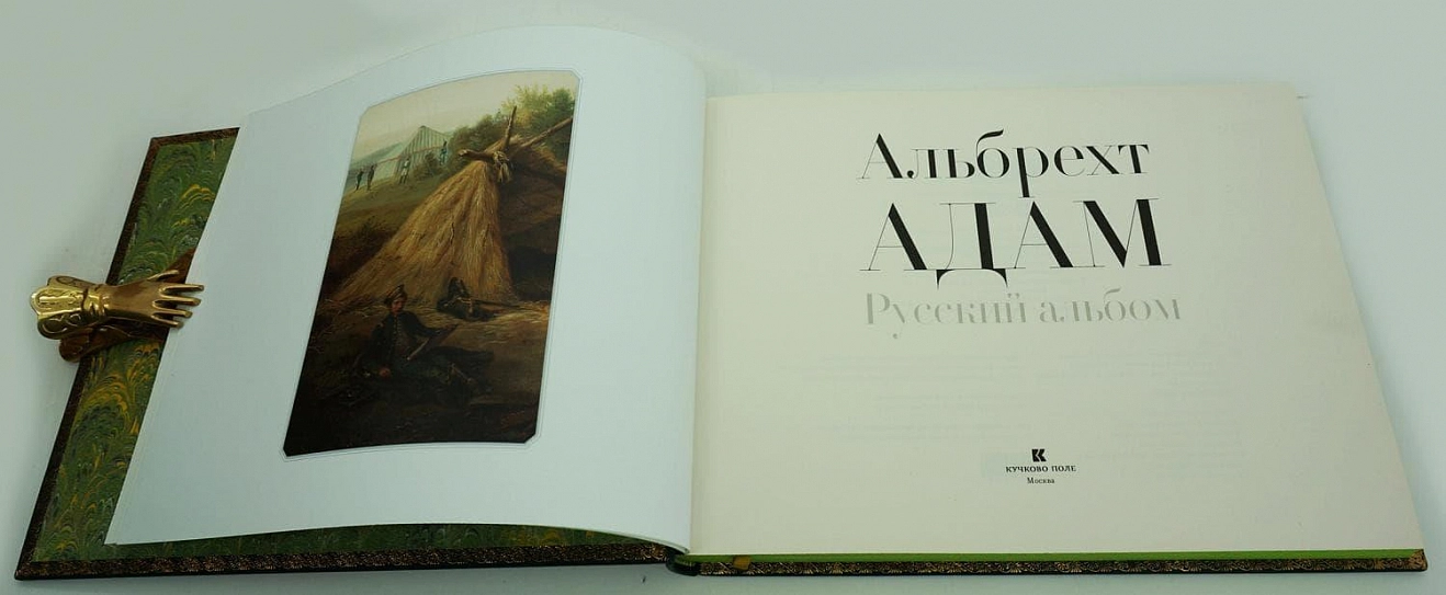 Подарочная книга "Русский альбом" Адам Альбрехт. АННОТАЦИЯ «Русский альбом» знакомит читателя с картинами немецкого художника Альбрехта Адама (нем. AlbrechtAdam, 16 апреля 1786 — 28 августа 1862) — немецкий художник, который зарисовывал поход Наполеона I в Россию, начиная с пожара Москвы и кончая бегством великой армии. «Русский альбом» знакомит читателя с картинами, выполненными маслом на картоне, из коллекции Государственного Эрмитажа. Известная, и безусловно ценная с исторической и художественной точки зрения коллекция картин поражает правдивостью изображения действительности. В полном объеме «Русский альбом» А. Адама публикуется впервые. Издание включает в себя фрагмент воспоминаний Альбрехта Адама «Из жизни художника-баталиста», посвященных русской кампании, впервые переведенных на русский язык. ОФОРМЛЕНИЕ Коллекционная. Эксклюзивное исполнение переплета: блок перешит на шнуры; обложка из натуральной, застаренной вручную кожи, со вставками; художественное тиснение на обложке и корешке, форзац выполнен из мраморной бумаги ручного крашения и окатан вручную бордюрным орнаментом; обрезы окрашены и гравированы вручную. Индивидуальный футляр с кожаной окантовкой.