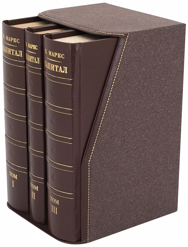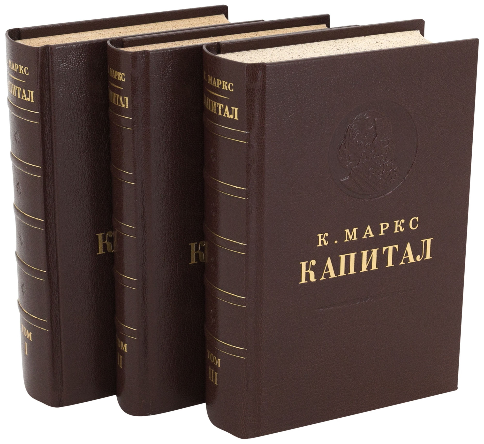 Полностью восстановленный и переплетенный трехтомник, оригинальное издание, в футляре. Формат 15х22 см. Книга «Капитал» – основной труд К. Маркса, состоящий из четырех томов. Первый том «Капитала» вышел в свет в мае 1867 г. благодаря значительной финансовой поддержке Ф. Энгельса. Маркс не успел завершить и подготовить к публикации второй и третий тома и они были опубликованы уже после его смерти под редакцией Ф. Энгельса (в 1885 и 1894 гг.). В состав «Капитала» в качестве четвертого тома включают также рукописи «Теории прибавочной стоимости» (1861–1863 гг.), посвященные критике буржуазной политэкономии.