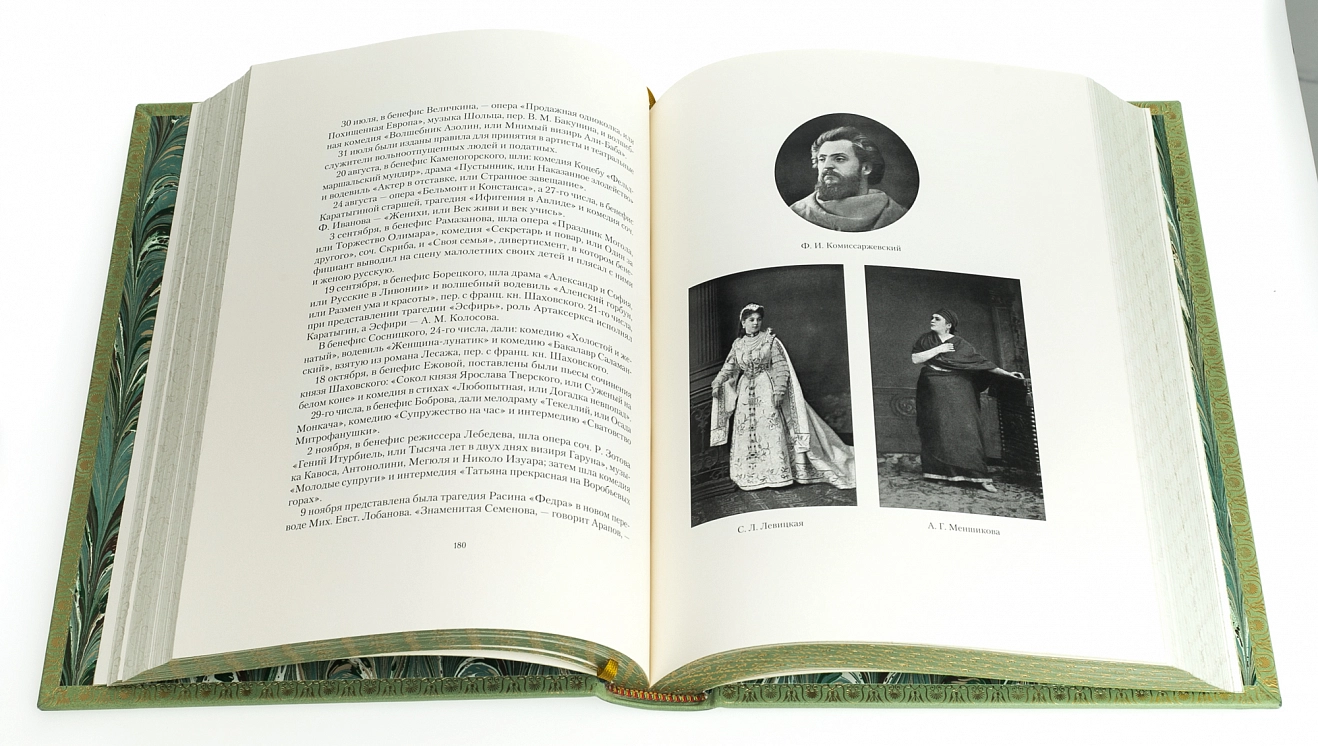 Подарочная книга "Иллюстрированная история русского театра XIX века" Божерянов И. Н. (Из собрания «Российская историческая библиотека») Эксклюзивный экземпляр с ручной росписью по коже