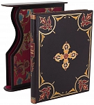 Эксклюзивный ручной ""французский"" переплет. Шагреневая кожа. При оформлении переплетной крышки и корешка применялась редкая техника аппликации на коже. Ручная накатка дублюры, торцов крышки и корешка 22-х каратным золотом. Обрезы окрашены и отгравированы вручную золотом. Форзац выклеен шелком. Для книги изготовлен полукожаный футляр оригинальной формы.