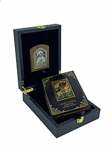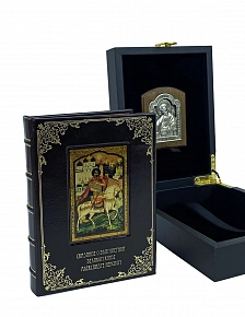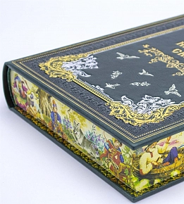 Кожаный переплет, индивидуальный дизайн тиснения, полностью ручная работа нашего производства. Разработан дизайн клише, стиль нанесения рисунка на обрезы книжного блока. Подобрана переплетная кожа, поэтапное тиснение, шлифовка края страниц и их тонирование, так же ко всему — внимательное отношение к мелочам, это кропотливая, трудоемкая работа и как итог прекрасный экземпляр подарочной книги!