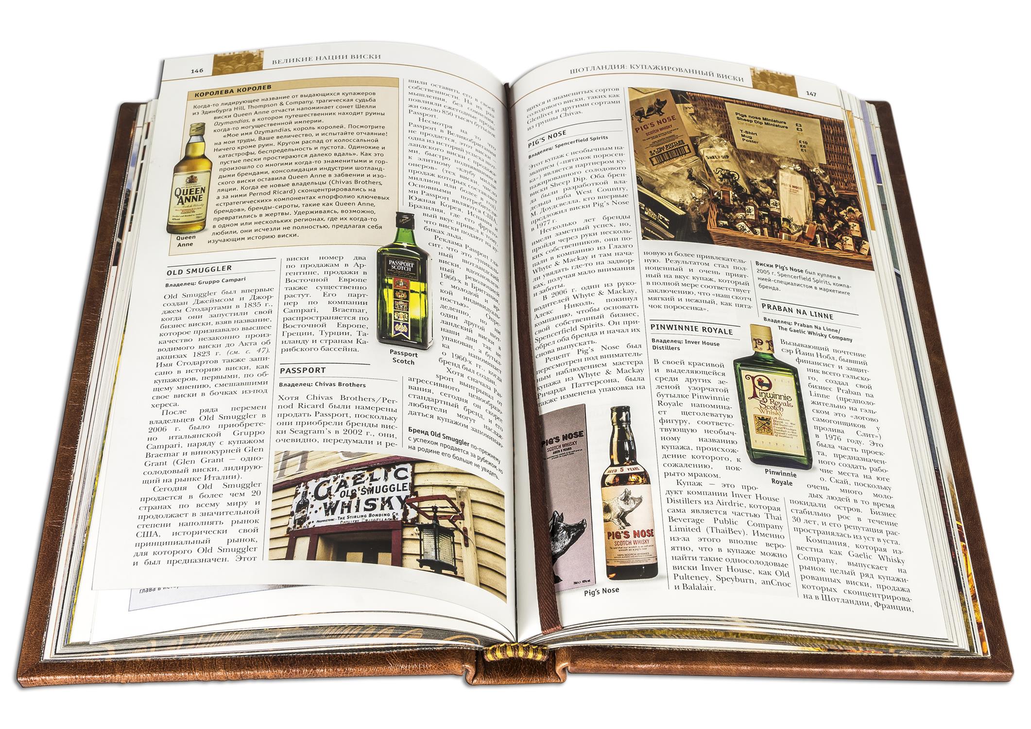 ЧАРЛЬЗ МАКЛИН «ВИСКИ» АННОТАЦИЯ Совершите путешествие по миру и откройте для себя удивительный мир виски. Откройте для себя напитки из великих стран, производящих виски, а также из менее известных районов и посетите большие и малые дистилляторы. Узнайте о происхождении виски и различных стилях, от односолодовых до современных премиальных смесей. Доберитесь до сути техники производства, этикеток, бутылок и карт. Кроме того, узнайте, как насладиться напитком, следуя подробным заметкам о дегустации и предложениям по подаче. ОФОРМЛЕНИЕ Составной переплет «Брадель», ручной работы, выполнен из кожи «Robbat Cognac» производства итальянской кожевенной фабрики «Claudio». Обложка книги двухуровневая, оформлена рельефным золотым тисненем, с использованием фольги «Luxor 240», декорирована хольнитенами цвета Gold, количеством 16 штук, вставками из на натурального дерева и холстом с художественной фотопечатью. Обрез выполнен в уникальной технологии художественной запечатки золотой основы. Сертификат. Бархатный чехол. Количество страниц – 288 стр. (мелованая бумага, цветная печать) Формат книги – 155х255х30 мм. Вес книги – 1 кг.