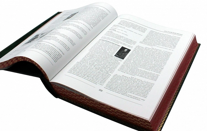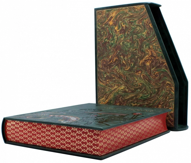 Редкая книга с уникальной отделкой, ручной кожаный переплет в изысканном французском стиле, отделка тиснением с золочением, цветное и блинтовое, форзац из бархатной бумаги с прокаткой золотым узором. Блок страниц отшлифован и тонирован с нанесением орнамента. Это отличный подарок близкому человеку, обладающему хорошей эрудицией.