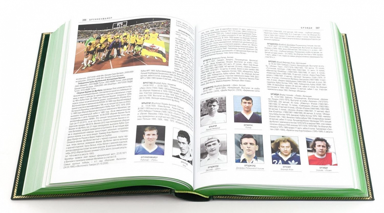 ФУТБОЛ. ЭНЦИКЛОПЕДИЯ В 3-Х ТОМАХ АННОТАЦИЯ Москва. Издательство «Человек». 2012 год. Автор идеи и руководитель проекта В.Л. Штейнбах. Художник А.Ю. Литвиненко. Энциклопедия «Футбол» охватывает все этапы развития мирового футбола. Здесь можно найти факты и сведения о всех странах членах ФИФА , их национальных сборных командах, а также крупнейших международных турнирах на уровне сборных и клубных команд, национальных чемпионатах и кубковых турнирах. При работе над книгой использованы официальные материалы ФИФА и УЕФА, отечественных и зарубежных спортивных организаций. ОФОРМЛЕНИЕ Переплет цельнокожаный. Каждый том исполнен по старинной французской технологии на 4-х шнурах. Многоцветное тиснение на крышках и корешке . Обложка украшена барельефом. Форзац выполнен из дизайнерской бумаги. Дублюра окатана орнаментом вручную. Обрез окрашен и отгравирован вручную. Каждая книга имеет индивидуальный , фигурный, полукожаный футляр