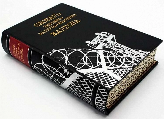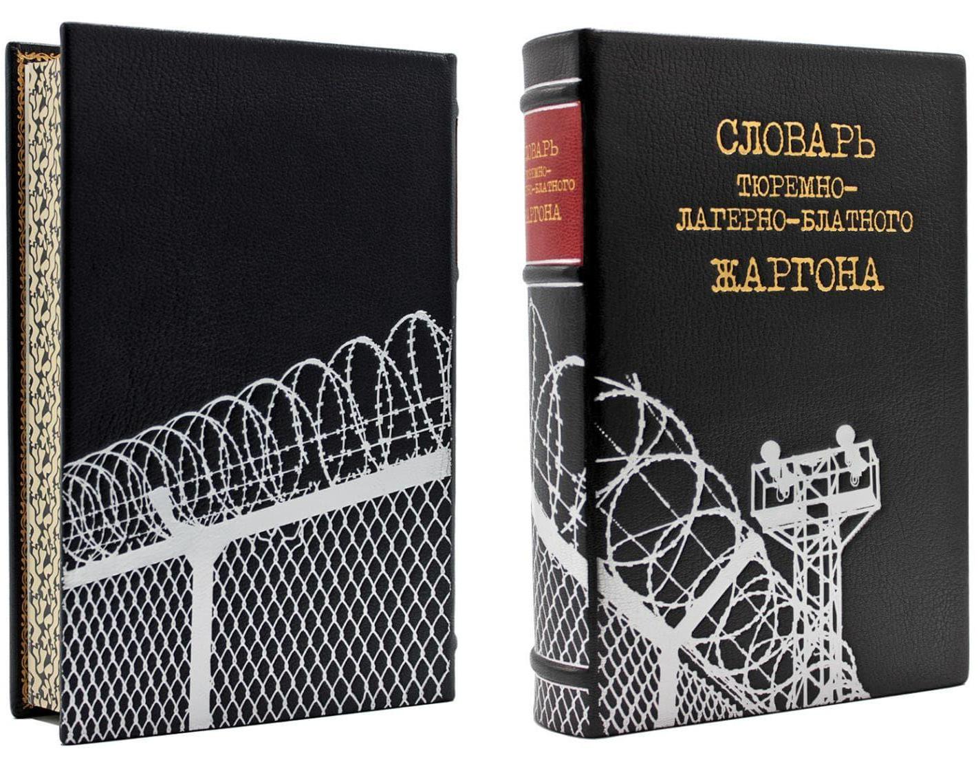 Словарь тюремно-лагерно-блатного жаргона в кожаном переплете, подарочная книга. Речевой и графический портрет советской тюрьмы. В книгу вошли подлинные образцы письменной речи носителей жаргона (заключенных, воров), сборник неофициальных топонимов Ленинграда. Уникальный каталог современной русской воровской татуировки, а также рисунки заключенных воров.