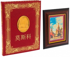 Подарочный набор "Москва" с книгой и картиной "Кремль" в лакированной шкатулке, на китайском языке