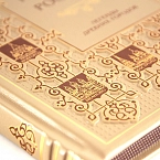 Тиснение блинтовое, цветной и золотой фольгой.