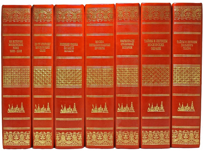 В комплект входят книги: 1) Из истории Московских улиц 1958-2008; 2) По ту сторону Московских окон; 3) Великие имена на карте Москвы; 4) Москва нереализованные проекты; 5) Магистрали столичной истории; 6) Тайны и легенды Московских окраин; 7) Тайны и легенды Большого театра.