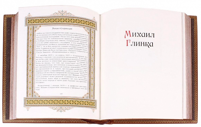 Цельнокожаный переплёт ручной работы, украшен золотым и блинтовым тиснением. Корешок декорирован бинтами. Текст книги напечатан на бумаге Munken Print Cream Шведского производства и дополнен цветными иллюстрациями. Обрез оформлен художественным изображением. Ляссе из шёлковой ленты. Форзац цельный из дизайнерской бумаги. Дублюра окатана золотом.
