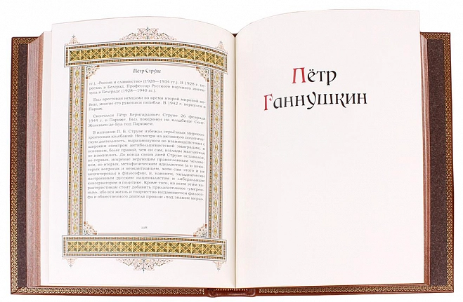 Цельнокожаный переплёт ручной работы, украшен золотым и блинтовым тиснением. Корешок декорирован бинтами. Текст книги напечатан на бумаге Munken Print Cream Шведского производства и дополнен цветными иллюстрациями. Обрез оформлен художественным изображением. Ляссе из шёлковой ленты. Форзац цельный из дизайнерской бумаги. Дублюра окатана золотом.