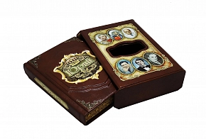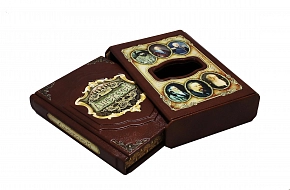 Эксклюзивное подарочное издание в кожаном переплете с золотым и блинтовым тиснениями, трехсторонним окрашенным обрезом и шелковым ляссе.