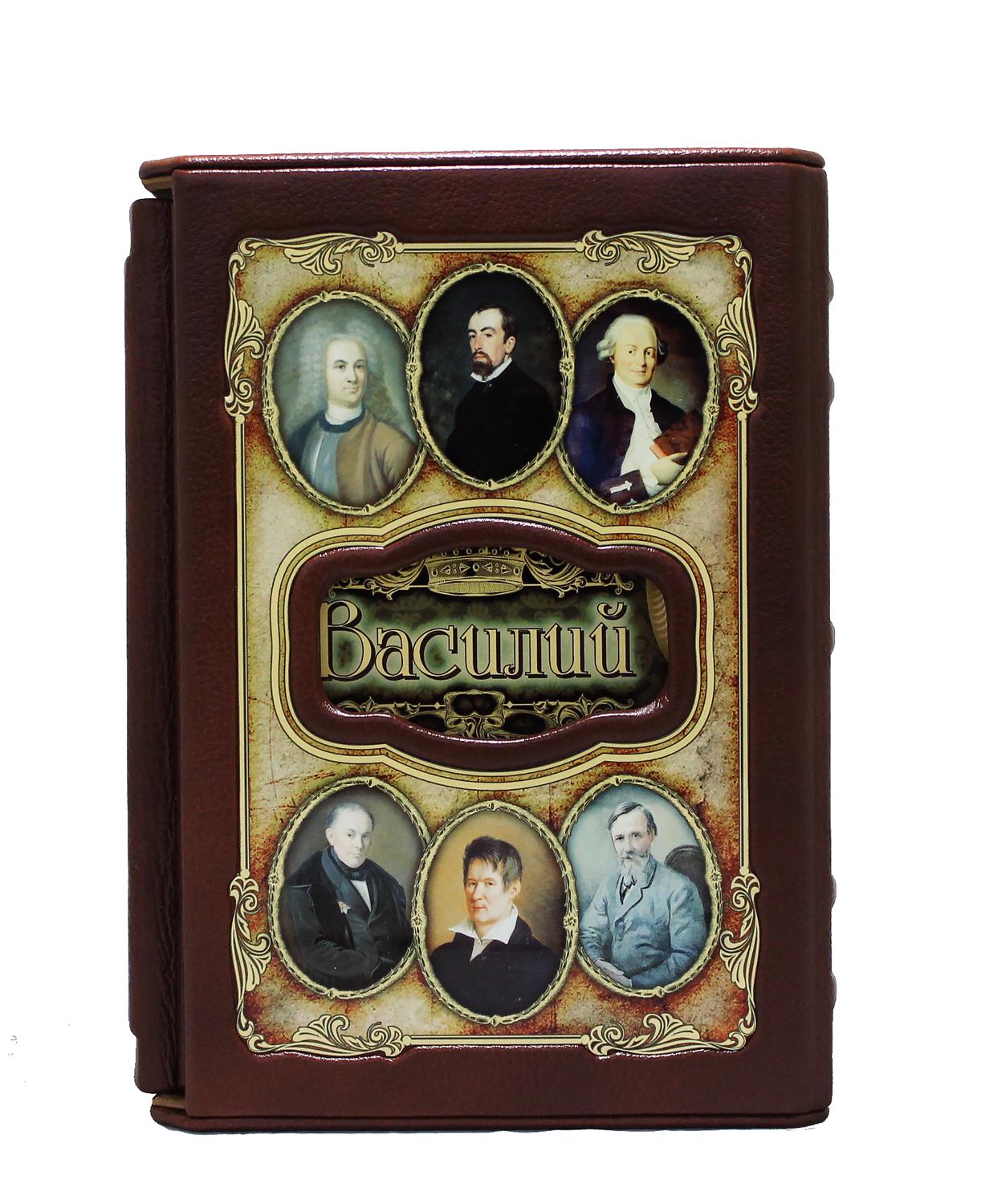 Василий. Великие имена сублимация АННОТАЦИЯ В этой книге представлены биографии людей, которые в разное время своими делами тоже прославили имя Василий. Книга послужит оригинальным подарком человеку по имени Василий. В издании представлены биографии следующих выдающихся Василиев: Василий I Дмитриевич - великий князь московский и владимирский. Василий II Васильевич Темный - московский князь. Василий III Иванович - великий князь московский и всея Руси, сын Ивана III и Софьи. Василий Татищев - государственный деятель, автор первого капитального труда по русской истории - "Истории Российской". Василий Тредиаковский - известный русский ученый и поэт XVIII века. Василий Чичагов - российский мореплаватель, адмирал с 1782 года. Василий Баженов - российский архитектор, художник, теоретик архитектуры и педагог. Василий Стасов - русский архитектор. Василий Тропинин - русский живописец, мастер романтического и реалистического портретов. Василий Головнин - русский мореплаватель, вице-адмирал, член-корреспондент Петербургской АН. Василий Жуковский - русский поэт, один из основоположников романтизма в русской поэзии, переводчик, критик. Василий Ключевский - видный русский историк, ординарный профессор Московского университета; ординарный академик Императорской Санкт-Петербургской Академии наук по истории и древностям Русским, председатель Императорского Общества истории и древностей российских при Московском университете, тайный советник. Василий Перов - русский живописец, один из членов-учредителей Товарищества передвижных художественных выставок. Василий Верещагин - русский живописец, один из наиболее известных художников-баталистов. Василий Поленов - русский художник, мастер исторической, пейзажной и жанровой живописи, педагог. Василий Суриков - великий русский живописец, мастер масштабных исторических полотен. Василий Кандинский - русский живописец, график и теоретик изобразительного искусства, один из основоположников абстракционизма. ОПИСАНИЕ Французский цельнокожаный переплёт ручной работы, украшен золотым и блинтовым тиснением. Обложка двухуровневая. Корешок декорирован бинтами. Текст книги напечатан на бумаге Munken Print Cream Шведского производства и дополнен цветными иллюстрациями. Обрез оформлен художественным изображением. Ляссе из шёлковой ленты. Форзац цельный из дизайнерской бумаги. Книга представлена в оригинальном подарочном коробе, перчатки и, по желанию, сертификат (может быть именным) в комплекте. Цветовое сочетание переплёта и упаковки может отличаться от представленных на фото.