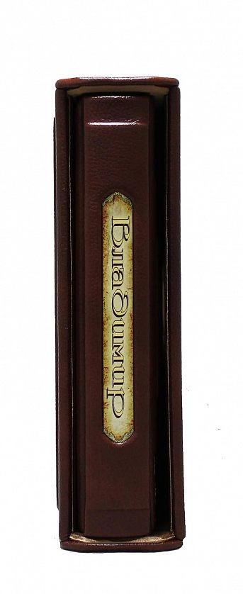 Французский цельнокожаный переплёт ручной работы, украшен золотым и блинтовым тиснением. Обложка двухуровневая. Корешок декорирован бинтами. Текст книги напечатан на бумаге Munken Print Cream Шведского производства и дополнен цветными иллюстрациями. Обрез оформлен художественным изображением. Ляссе из шёлковой ленты. Форзац цельный из дизайнерской бумаги. Книга представлена в оригинальном подарочном коробе, перчатки и, по желанию, сертификат (может быть именным) в комплекте. Цветовое сочетание переплёта и упаковки может отличаться от представленных на фото.