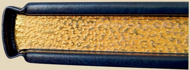 Переплет ручной работы. Натуральная переплетная кожа. Каптал из шелковых нитей. Ляссе шелковое. Обрез торшонированный золотой фольгой. Украшение переплета: тиснение полиграфической фольгой, полиграфическая вставка с сюжетами картин.