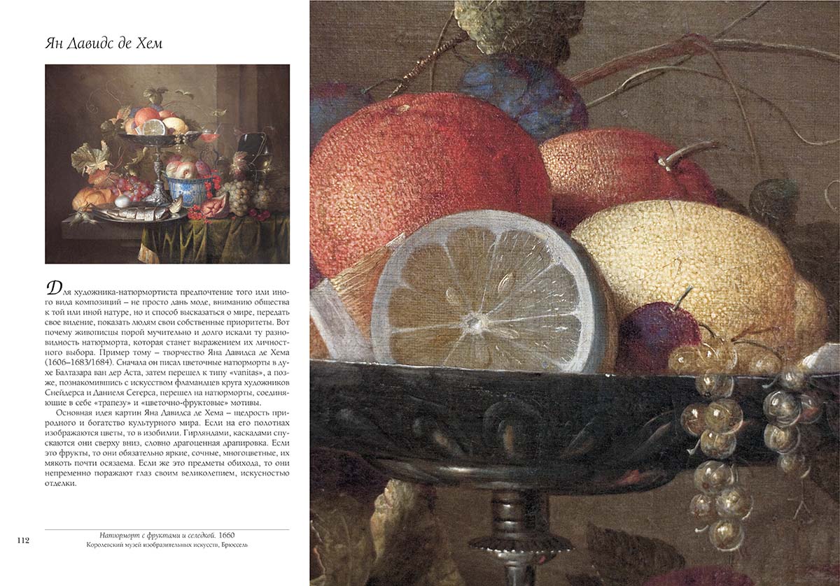 Подарочный альбом в кожаном переплете. В книге представлены основные жанры натюрморта. Можно увидеть, как художники учились выражать через предметный ряд свои чувства, мировоззрение, отношение к миру.