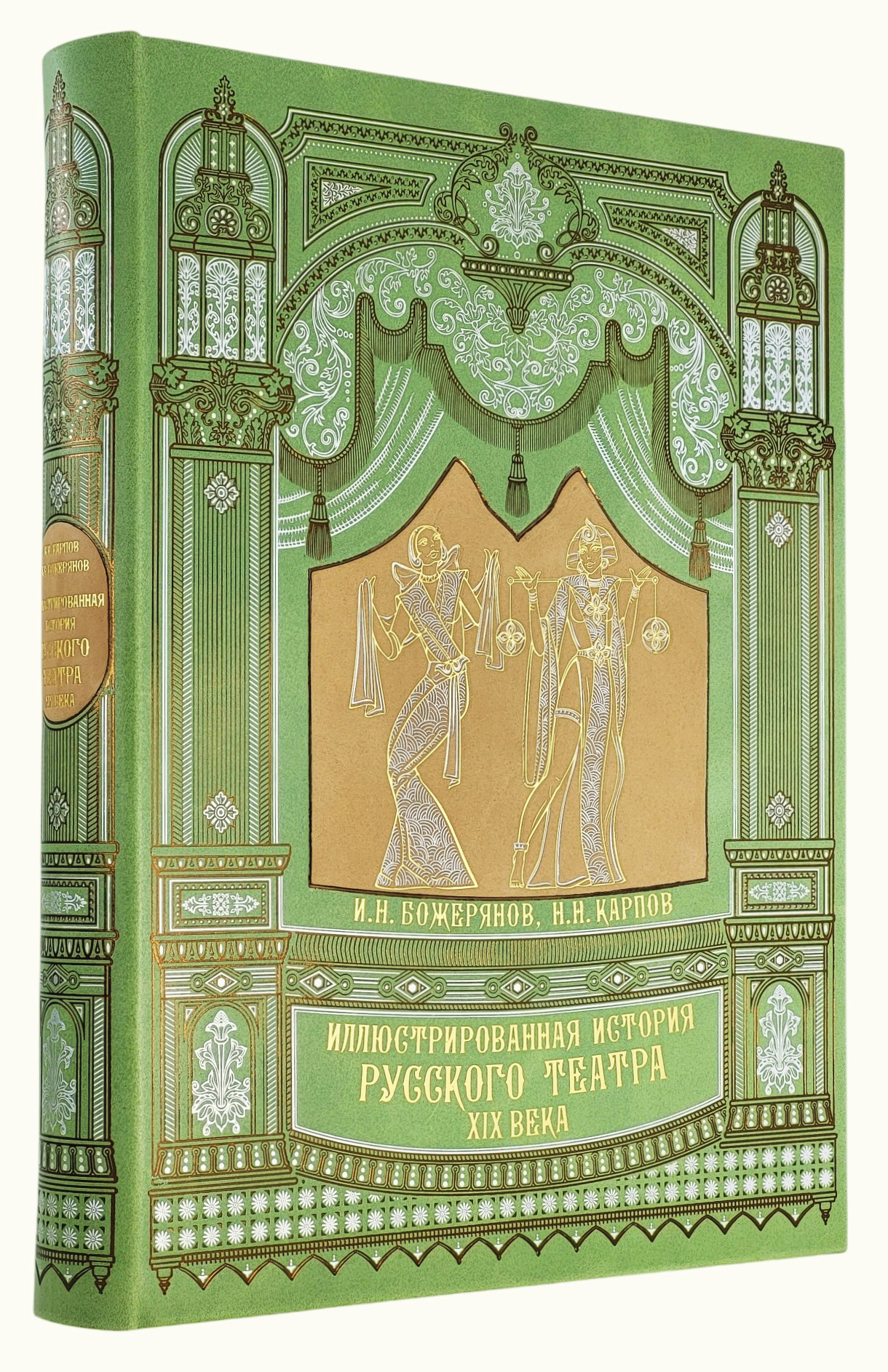 Подарочная книга «Иллюстрированная история русского театра XIX века» В 2-х томах, в 6-ти вып. Божерянов И. Н. АННОТАЦИЯ Издание является первым полным и систематическим исследованием истории русского драматического искусства XIX века и сохранило своё значение до настоящего времени. Издание является первым полным и систематическим исследованием истории русского драматического искусства XIX века и сохранило все свое значение до настоящего времени. Повествование иллюстрируют портреты актёров, композиторов, владельцев театров, факсимиле автографов и старых афиш. Автор издания — историк театра и искусства, писатель, виднейший публицист своего времени Иван Николаевич Божерянов (1852—1919). Его труды, написанные ярко и живо, содержащие массу фактического материала, являются ценным вкладом в русскую историческую литературу. Шесть выпусков в издательских литографированных обложках. В каждом выпуске множество иллюстраций в тексте и на отдельных листах, а также факсимиле на вклейках. Несмотря на большой успех у читающей публики и критики, из планировавшихся восьми выпусков было опубликовано шесть, охватывающих период от начала XIX века до конца царствования Николая I. После выхода вып. 5-6 в 1906 г., Божерянов занялся подготовкой своих трудов, посвященных грядущим: Столетию Отечественной войны 1812 г. и Трехсотлетию Дома Романовых, последовавшие вслед за этим события Первой Мировой войны и Революции 1917 г. не дали Божерянову завершить труд, посвященный истории театра. Впервые том 1, выпуски 1 – 3, в качестве единого ансамбля увидели свет в авторском сборнике «Складчина. В пользу детей убитых и раненых воинов» ([1905?], отдельно первые выпуски выходили несколько ранее – в 1903 г.). Труд И.Н. Божерянова, как это уже говорилось выше, сразу вызвал большой интерес у всех любителей и почитателей театра (а надо сказать что, к почитателям театра относилась в том числе Императорская семья). Поэтому неудивительно, что спустя небольшое время после выхода в свет все выпуски «Иллюстрированной истории русского театра» становились библиографической редкостью. И сейчас, для того, чтобы переиздать этот ценнейший источник по истории русской культуры и русского театрального искусства, коллективу издательства пришлось провести научно-изыскательские работы в различных библиотеках, музеях, фондах и коллекциях России для выявления полного и точного содержания всех вышедших 6 выпусков этого труда. Надо сказать, что полный комплект всех 6 выпусков встречается крайне редко, к тому же в большинстве собраний они сохранились с различными утратами – поэтому приходилось сверять тексты и наличие иллюстраций в одних и тех же выпусках в разных библиотеках, музеях и т.п. Приведение авторского текста издания к современному правописанию и орфографии, сведение воедино разрозненно выходивших разделов издания – отдельный подвиг редакторов и корректоров, сделавших более 20 000 правок, но сохранивших дух и стиль И.Н. Божерянова. ОПИСАНИЕ Обложка оформлена в классическом стиле с фантазийными элементами Ар-деко и сама по себе является образцом современного переплетного искусства. Эксклюзивное исполнение переплета: Кожа натуральная, шагреневая; Бумага дизайнерская, тонированная в массе; Переплет, выполнен по классической старинной технологии (французский переплет); Блок сшит на 4-х шн