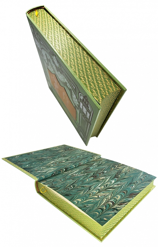 Обложка оформлена в классическом стиле с фантазийными элементами Ар-деко и сама по себе является образцом современного переплетного искусства.