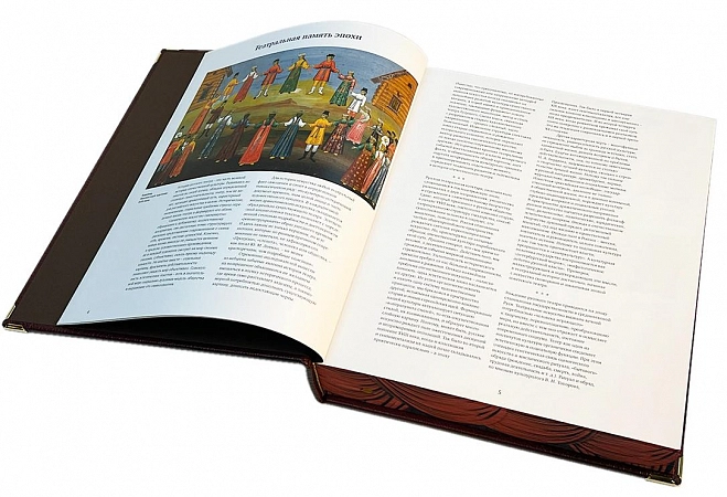 Подарочная книга "Русский театр 1824-1941г" (в коробе) АННОТАЦИЯ Иллюстрированная хроника охватывает более столетия из истории российской театральной жизни. Книга состоит их четырех частей, три из которых посвящены ""золотому веку"" в истории русского театра - периоду с 1824-го по 1917 год. В качестве отправной даты выбран 1824 год, когда произошло важнейшее событие не только для театра, но и для всей России - был образован московский Малый театр, ставший для страны ""вторым университетом"". Именно тогда, в первой половине XIX века, начала формироваться национальная театральная культура России, впоследствии получившая мировое признание. В ее истории: классические постановки пьес Островского и Чехова, спектакли Таирова и Мейерхольда, авангардные поиски 1920-х, становление театра соцреализма. Иллюстрированная хроника завершается 1941 годом - началом Великой Отечественной войны. Издание подготовлено при участии Государственного центрального театрального музея имени А.А.Бахрушина. 2-е издание. Книга «Русский театр. 1824-1941. Иллюстрированная хроника российской театральной жизни» авторов Лидия Постникова, Евгения Недзвецкая, Людмила Гузовская, Карина Оганджанова, Татьяна Небесная оценена посетителями КнигоГид. ОПИСАНИЕ Кожаный переплет ручной работы с художественными вставками. Ярко оформленный книжный блок. Исполнение в оригинальном подарочном коробе, сделанном из металла, и обтянутым вручную высококачественной кожей. Металлические художественные вставки с изображением, рисованный обрез соответствующий тематике издания. Книга представлена в оригинальном подарочном коробе, перчатки и, по желанию, сертификат (может быть именным) в комплекте. Цветовое сочетание переплёта и упаковки может отличаться от представленных на фото.