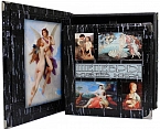 Цельнокожаный переплёт ручной работы, украшен иллюстрированной вставкой из цветного металла.