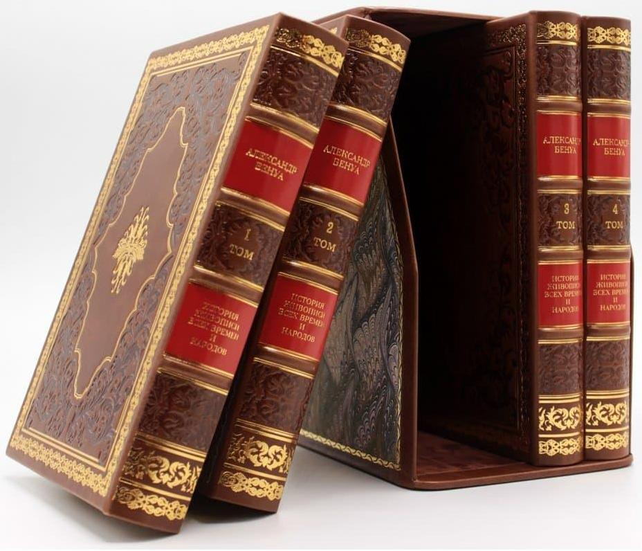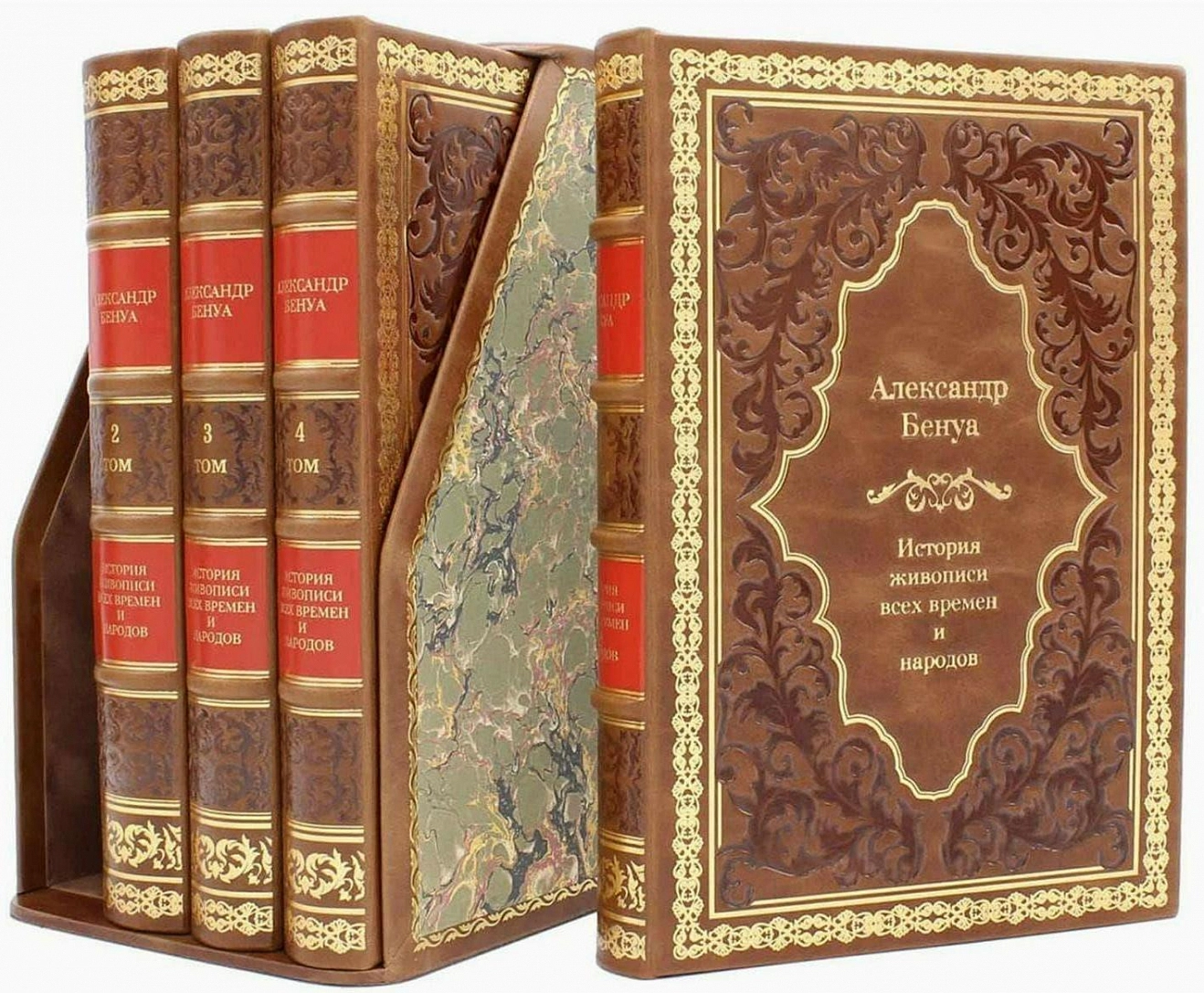 Подарочные книги "История живописи всех времен и народов" Александр Бенуа (в 4-х томах) АННОТАЦИЯ Данное издание работ Александра Бенуа является нашей попыткой создать достойную оправу этой гениальной работе по истории мирового искусства и мы сделали великолепный образец ручного переплета с изысканным стилем оформления, полностью соответствующий этому значимому труду. Александр Николаевич Бенуа был художественным руководителем «Русских сезонов» в Париже, один из основателей и идеологов консолидации русских художников в знаменитое объединение «Мир искусства», которое безусловно оказало серьезное влияние на развитие европейского искусства XX века и во многом определив его дальнейшее развитие. «История живописи всех времен и народов» - пожалуй, самая значительная работа А.Н. Бенуа по истории мирового искусства. В настоящем издании предлагается полный текст «Истории живописи всех времен и народов» в современном написании. Особую ценность изданию придает то, что богатый иллюстративный ряд, предлагаемый автором, воспроизводится с использованием современных средств обработки, частично в полном цвете. ОФОРМЛЕНИЕ Французский переплет, натуральные материалы: переплетная кожа высокого качества, форзац из дизайнерской бумаги откатан вручную золотым тиснением. Тиснение блинтовое и золочением. Индивидуально для данного издания разработан стиль оформления. Отпечатано на высококачественной бумаге.