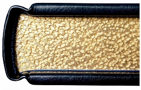 Переплет ручной работы. Натуральная переплетная кожа. Каптал из шелковых нитей. Ляссе шелковое. Обрез торшонированный золотой фольгой. Украшение переплета: тиснение полиграфической фольгой, декоративная вставка-печать на холсте.
