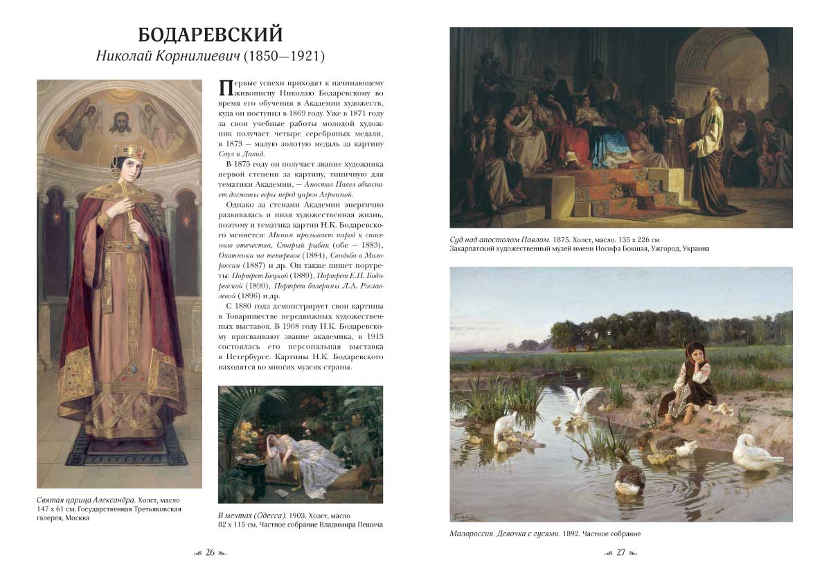 Русская живопись. Забытые имена АННОТАЦИЯ Художник трудится во благо людей, открывая в полотнах свое представление о тонком мире человеческой души. Ведь был он талантлив, а значит, особенным образом видел мир вокруг и своим творчеством прославлял страну. Так отчего же художника… забывают? ОПИСАНИЕ Переплет ручной работы. Натуральная переплетная кожа. Каптал из шелковых нитей. Ляссе шелковое. Обрез торшонированный золотой фольгой. Украшение переплета: тиснение полиграфической фольгой, полиграфическая вставка.