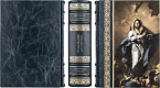 Составной переплет «Брадель» ручной работы выполнен из натуральной кожи «Robbat Blue» производства итальянской кожевенной фабрики «Benerichetti». Обложки декорированы вставками из холста с художественными репродукциями и рельефным золотым тиснением (фольга «Luxor 240»). Обрезы книжных блоков оформлены в авторской технике золочения с нанесением орнамента.