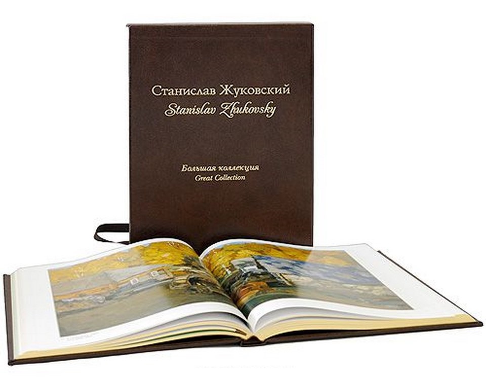 Жуковский. Большая коллекция АННОТАЦИЯ Станислав Жуковский – выдающийся мастер русской пейзажной живописи конца XIX – начала XX века, наиболее выдающийся ученик И.Левитана достигший истинного совершенства в так называемом усадебнопейзажном жанре. Его работы пронизаны человечностью, лиризмом. По словам критика, Станислав Жуковский – «художник, соединяющий необходимое… упорное изучение всех тончайших оттенков и тонов в излюбленном им мотиве с очень сильным, свежим, молодым поэтическим чувством.» ОПИСАНИЕ Переплет ручной работы. Натуральная переплетная кожа. Каптал из шелковых нитей. Ляссе шелковое. Обрез торшонированный золотой фольгой. Украшение переплета: тиснение полиграфической фольгой.