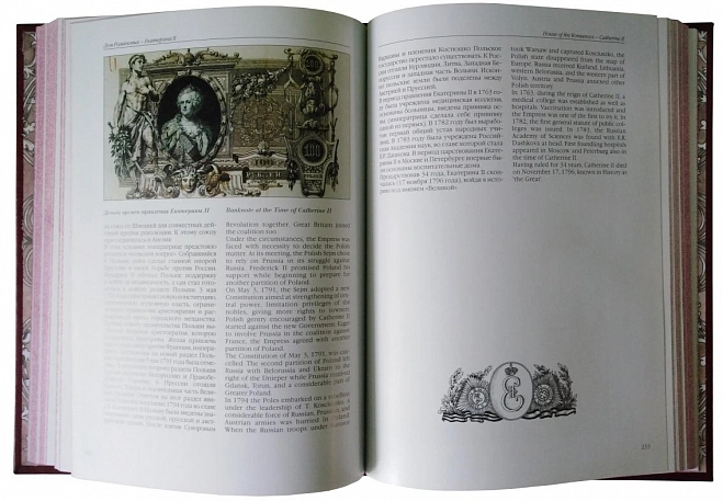 Подарочная книга "Дом Романовых" АННОТАЦИЯ В книге представлена хроника правления царей и императоров России из рода Романовых, каждому из которых посвящена отдельная глава. Это подарочное издание отличается великолепным иллюстративным рядом, куда включены портреты всех Романовых и выдающихся личностей нашей истории, а также многочисленные произведения искусства, созданные мастерами прошлых эпох. Параллельный текст на русском и английском языках. ОПИСАНИЕ Переплет ручной работы. Натуральная переплетная кожа. Каптал из шелковых нитей. Ляссе шелковое. Обрез окрашенный. Украшение переплета: тиснение полиграфической фольгой, конгревное тиснение.