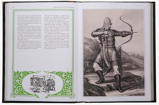 Книга поделена на иллюстрированные разделы по организации войска и тактики боя, устройству крепостей и другим темам (включая даже быт солдат) с Киевской Руси до начала ХХ века. Издание включает в себя малоизвестный современному читателю старинный иллюстративный ряд, в том числе старинные гравюры, дополнена словарем терминов. Тексты и подписи даны на русском и английском языках. Это настоящая энциклопедия, прекрасный подарок любителю военной истории и любому, имеющему отношение к армии.