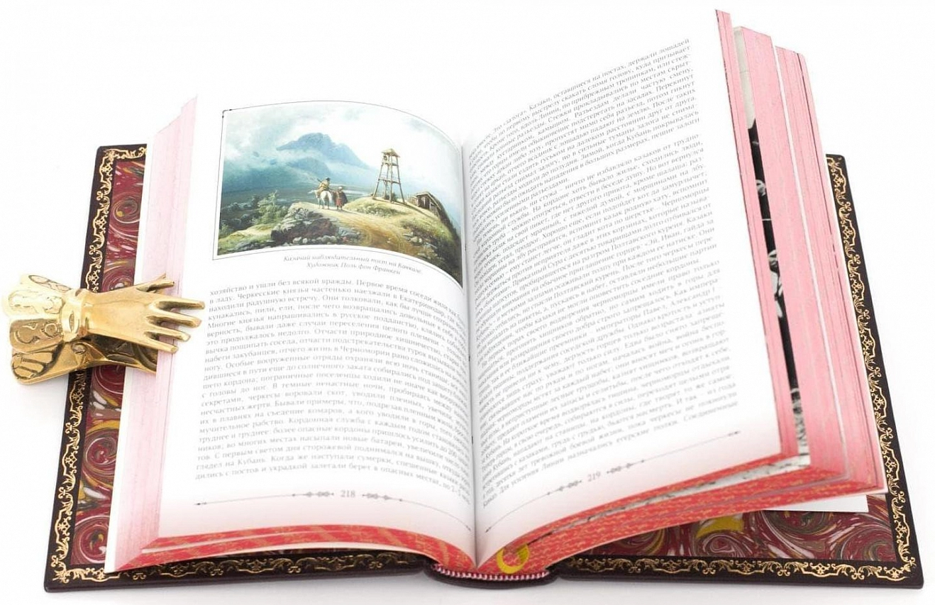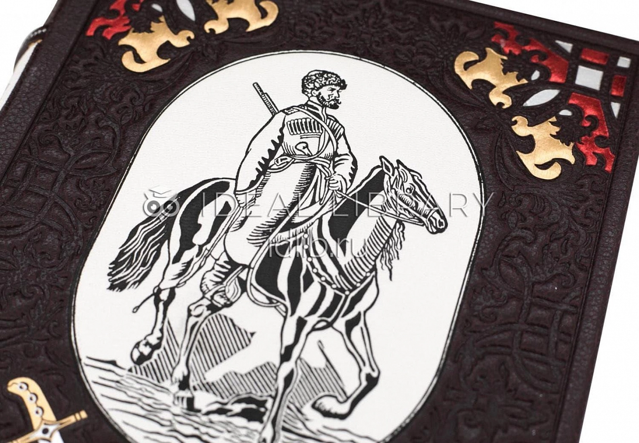 Подарочные книги "Казаки. Исторические очерки и исследования в трех томах" Мария и Виктор Котляровы. АННОТАЦИЯ Издательство «СНЕГ». Издательство М. и В. Котляровых. Пятигорск. 2015. Автор предисловия и аннотаций канд. ист. наук Э. Бурда. Данное издание несет огромный пласт информации о казачестве и о его неоценимом вкладе в становление российской государственности. Здесь впервые собраны вместе практически все работы, не переиздававшиеся столетиями, в подавляющем своем большинстве неизвестные современному читателю, касающиеся терского казачества и одновременно казачества сопредельных территорий: Кубанское войско, Астраханское войско, Донское войско и др. Трёхтомник иллюстрирован сотнями цветных иллюстраций, большинство из которых не публиковались ранее. ОФОРМЛЕНИЕ Переплеты изготовлены по старинной европейской технологии на шнурах, в работе использовалась натуральная кожа - шагрень. Переплетные крышки и корешки украшены вставками белой и красной шагреневой кожи в технике аппликации, а также декорированы бинтами и оттиснены несколькими цветами фольги. Обрезы окрашены и гравированы вручную. Ручная накатка дюблюры. Форзацы оформлены мраморной бумагой ручного крашения. Футляр украшен кожаным кантом и тиснен золотом. Ручная работа.