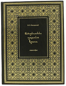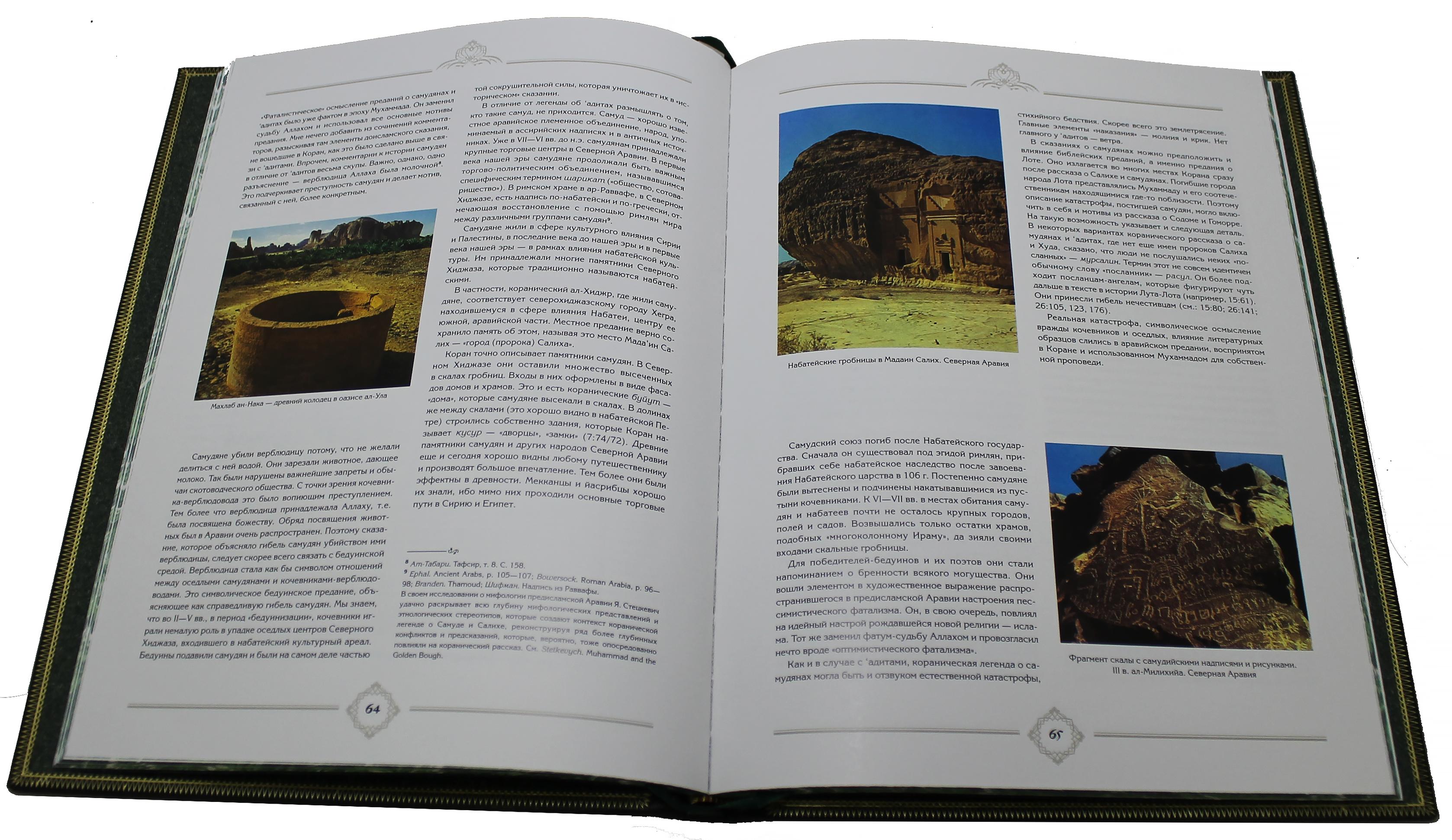 Подарочная книга "Исторические предания Корана" АННОТАЦИЯ "Исторические предания Корана" - очередной этап размышлений о Коране и тех исторических сюжетах, которые в нем содержатся. "Исторический" понимается здесь так же, как в голландской живописи времени Рембрандта: все рассказы о прошлом, главным образом - священная история. ОПИСАНИЕ Цельнокожаный переплёт ручной работы, украшен золотым тиснением. Текст книги напечатан на мелованной бумаге и дополнен цветными иллюстрациями. Обрез оформлен художественным изображением. Ляссе из шёлковой ленты. Форзац цельный из дизайнерской бумаги. Дублюра окатана золотом. Книга представлена в оригинальной подарочной упаковке. Цветовое сочетание переплёта и упаковки может отличаться от представленных на фото