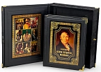 Книга представлена в оригинальном подарочном коробе, сделанном из мдф и обтянутым вручную высококачественной натуральной кожей. Цельнокожаный переплёт ручной работы, украшен иллюстрированной вставкой из цветного металла. Обложка двухуровневая. Металлические уголки дополняют дизайн и сохраняют книгу при использовании. Текст книги напечатан на мелованной бумаге и дополнен цветными иллюстрациями. Обрез оформлен художественным изображением. Ляссе из шёлковой ленты. Форзац цельный из дизайнерской бумаги.